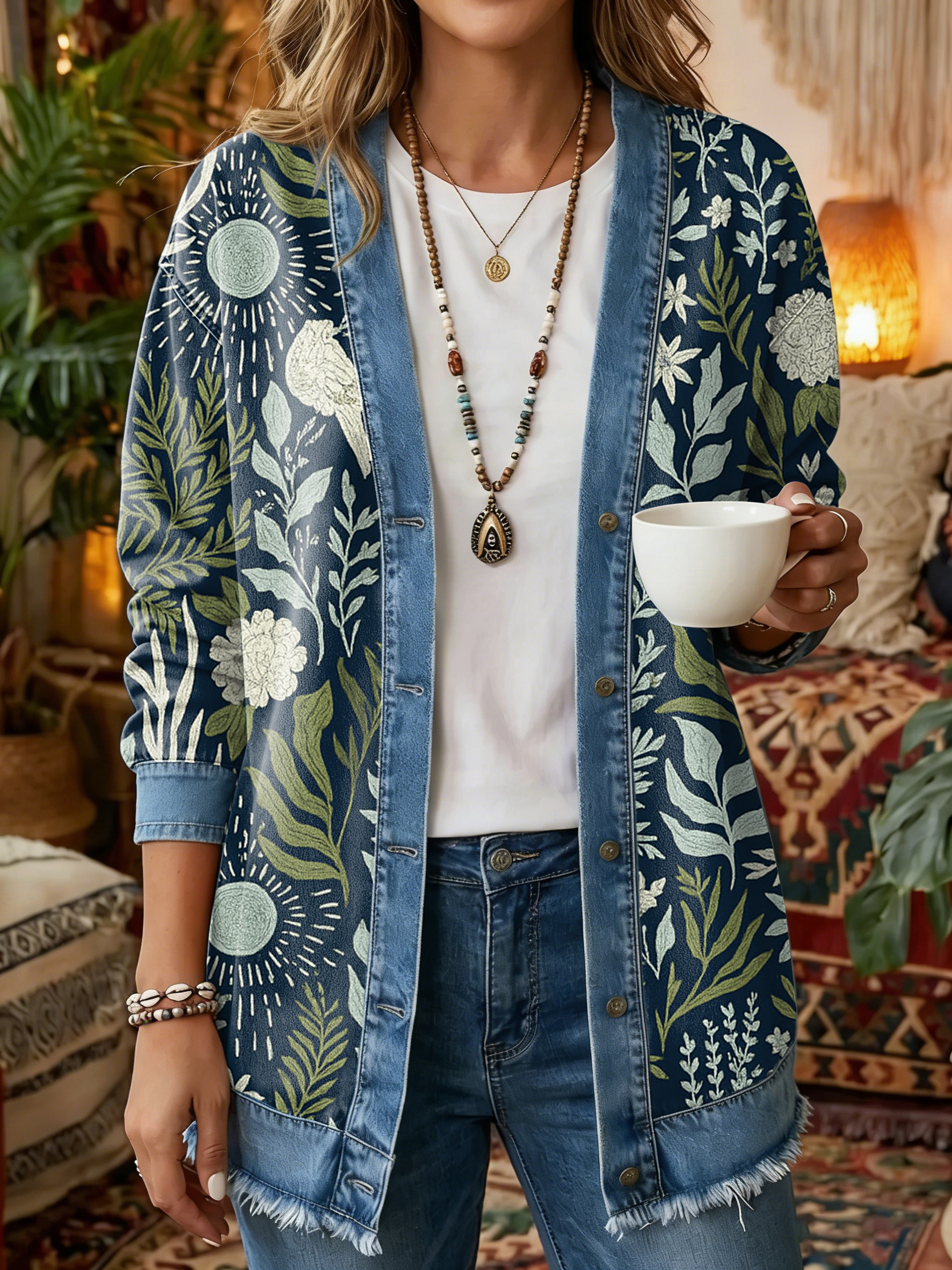 Women's Vintage Pattern Art Print Casual Long-sleeve Shirt Jacket