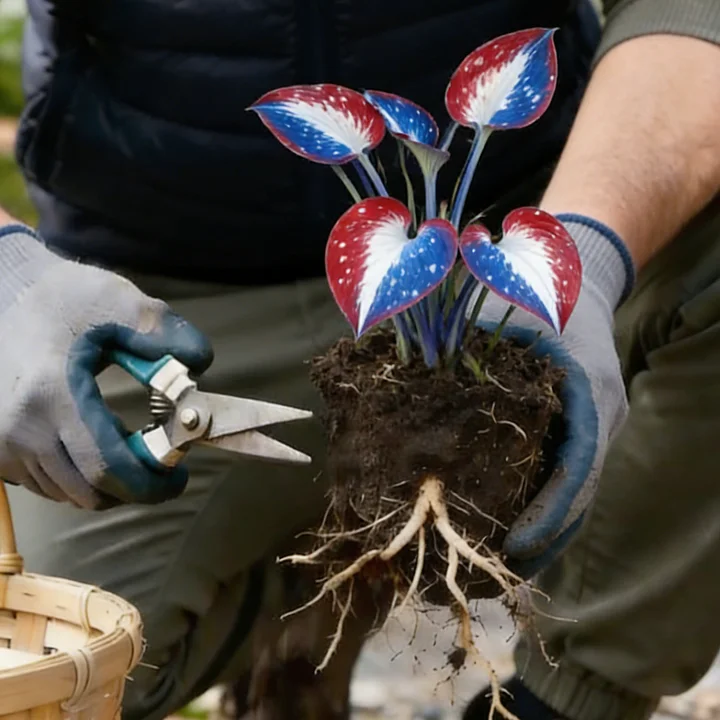 These rare hybrid hostas were developed through selective breeding to create stunning red, white, and blue foliage, inspired by the colors of the American flag.