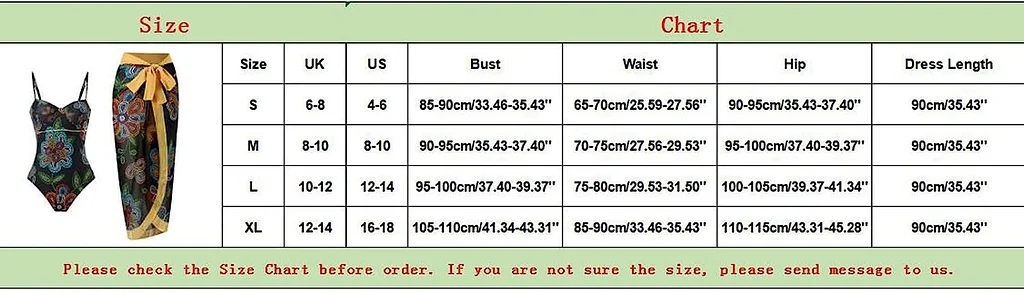 Women's Sleeveless V-Neck Floral Print Swimsuit and Sarong Swimsuit, lightweight, soft and stretchy with a fitted cut.