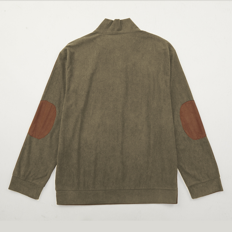Men's Outdoor Casual Zip Polo Stand Collar Long Sleeve Sweatshirt Double Layer Lapel Fur Leather Collar Pullover