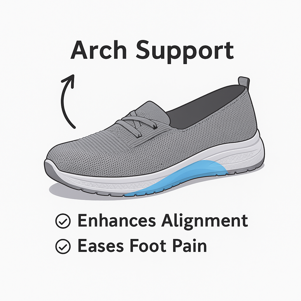 Engineered to promote natural foot alignment, these shoes feature a contoured insole and built-in arch support that reduce heel and joint pain while improving posture.