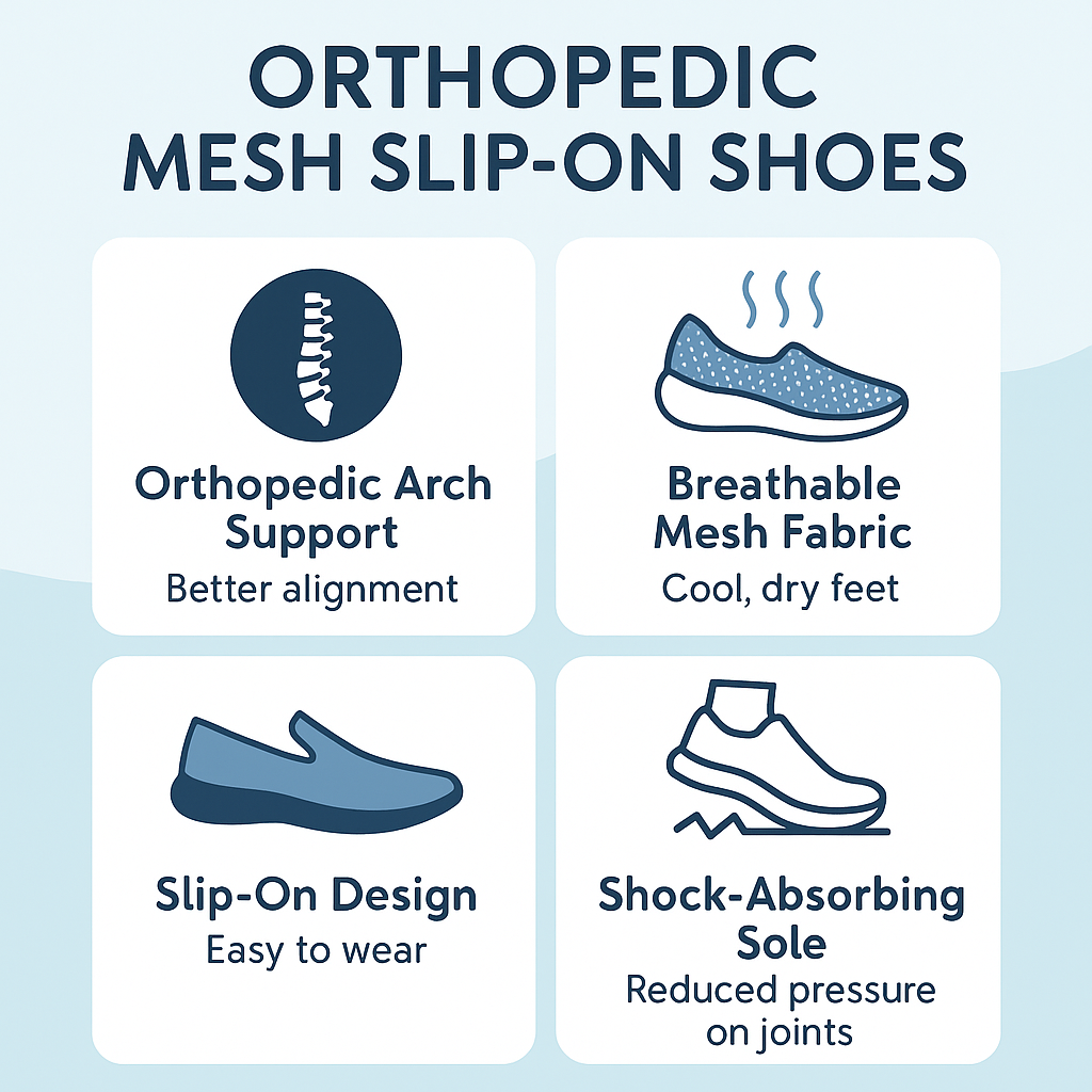 Say goodbye to foot pain and poor posture with Findbestes™ Orthopedic Mesh Slip-Ons—the perfect blend of style, comfort, and support designed for women who want both health and elegance.