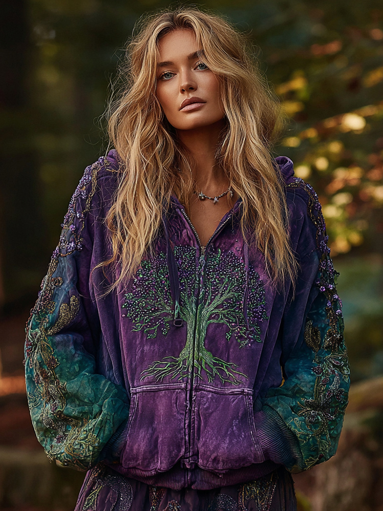 Women's Viking Tree Of Life Cozy Warm Zip-up Cardigan