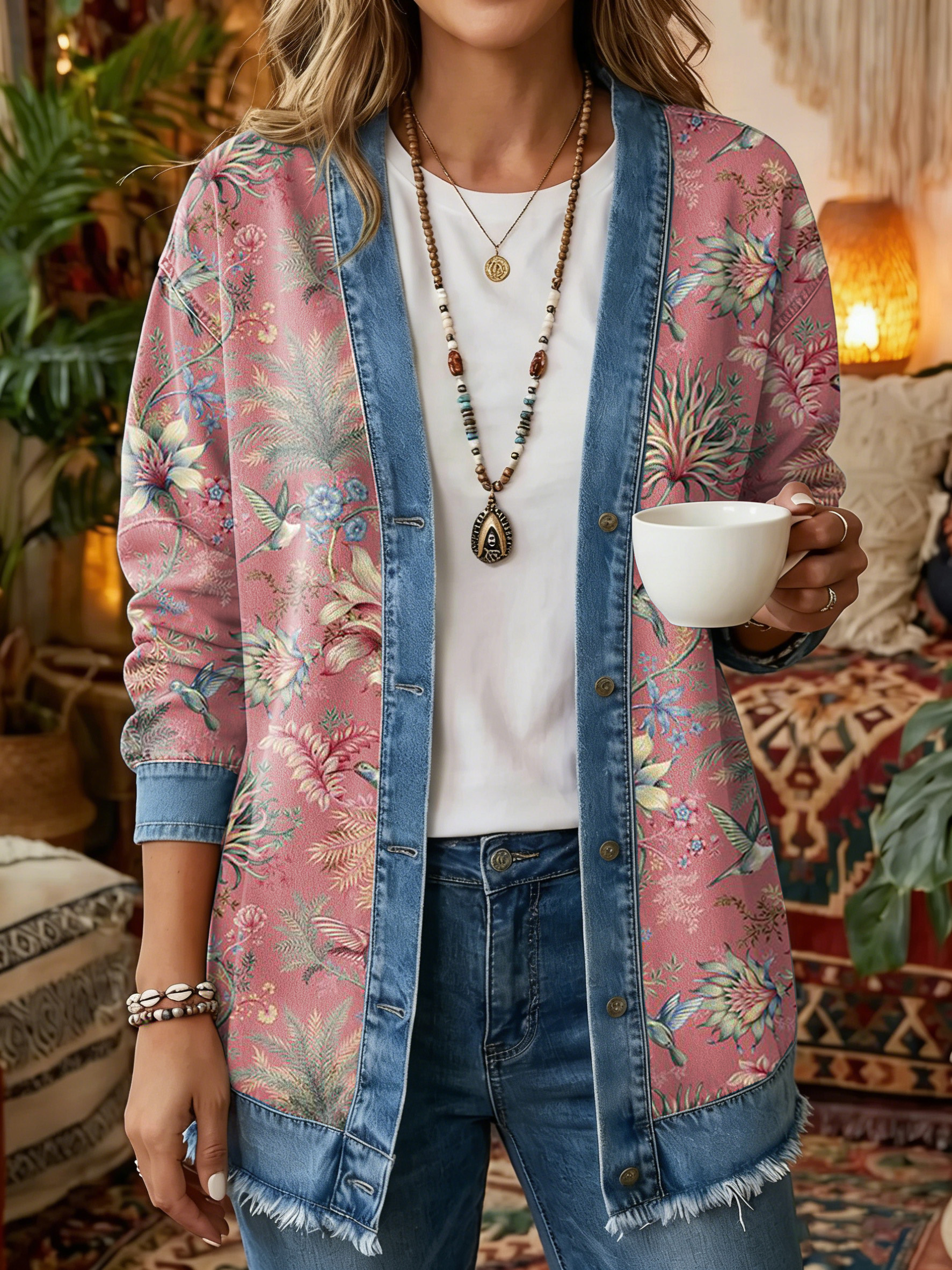 Women's Vintage Pattern Art Print Casual Long-sleeve Shirt Jacket