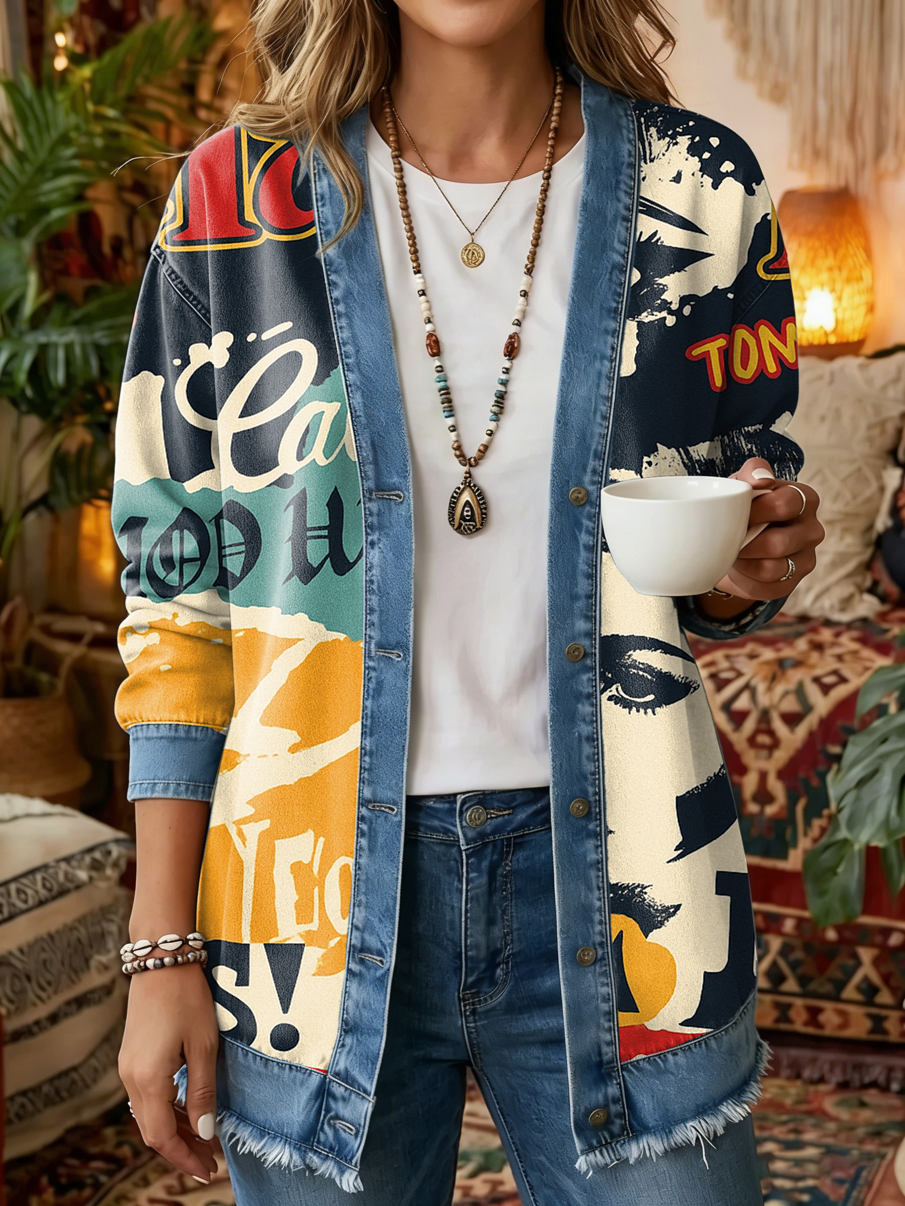 Women's Vintage Pattern Art Print Casual Long-sleeve Shirt Jacket