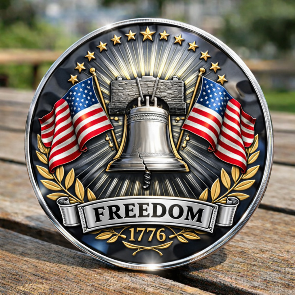 The reverse centers on the iconic Liberty Bell, a timeless symbol of freedom, justice, and the enduring promise of independence. Its historic crack reminds us that liberty is hard-won, imperfect, and priceless.